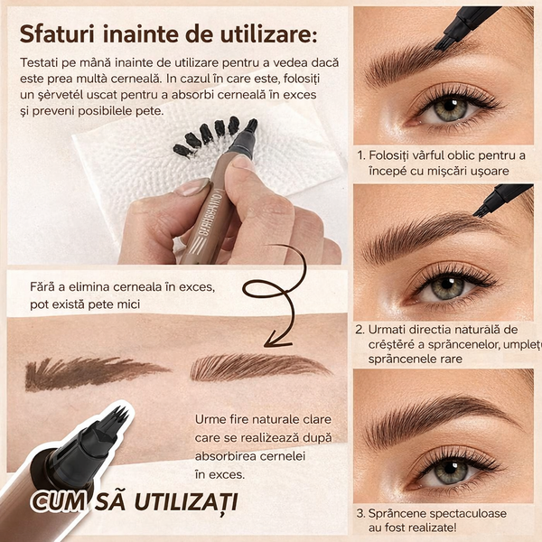 Contur precis și fire realiste rapid, pentru sprâncene naturale, rezistente toată ziua și ușor de purtat
